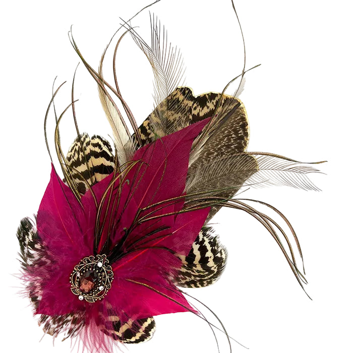 Jazz up a flat cap or any other untrimmed hat with this stylish Beetroot Pink & Natural Magnetic Feather Trim. Use as a corsage on a jacket, dress, or blouse. Mix and match feathers and centerpieces. Swap and change to different hats. Start your collection now!